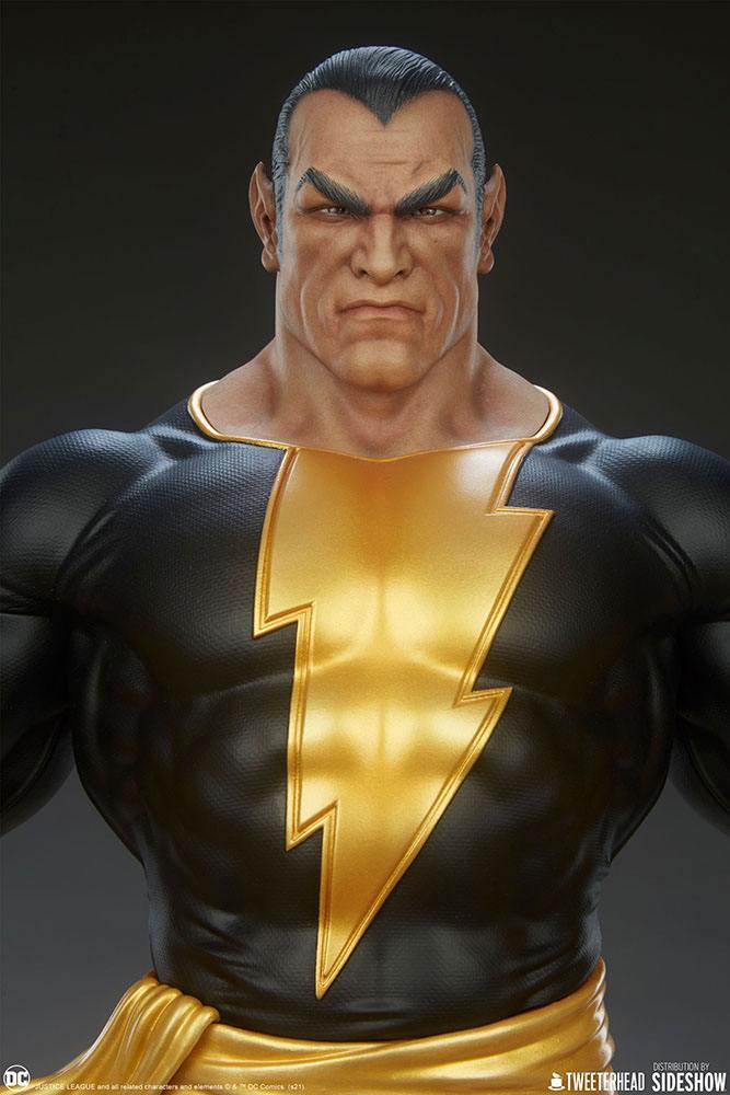 Statuette Black Adam en résine, taille env. 53 x 30 x 25 cm sur socle. Modèle présenté par Tweeterhead.