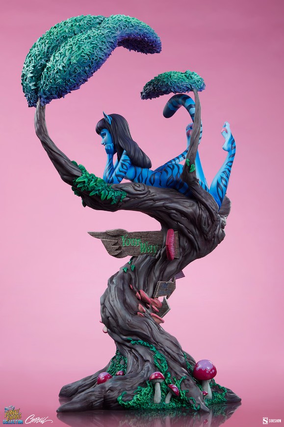 Statuette en résine Lady Cheshire Cat inspirée du conte Alice au Pays des Merveilles. Modèle sous licence officielle fini et peint à la main en édition limitée par Sideshow Collectibles.