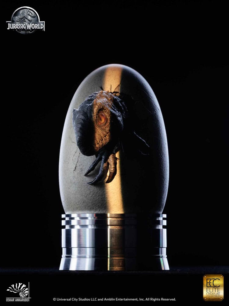 Set de 3 statuettes en résine haute qualité à l’échelle 1/2 représentant l’éclosion de l’œuf de l’Indominus Rex du film Jurassic World !