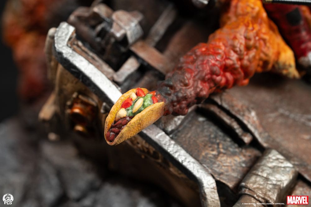 Buste Deadpool en résine taille env. 42 cm avec socle décor. Modèle avec un niveau de détail exceptionnel, fini et peint à la main en édition limitée par Premium Collectibles Studio.